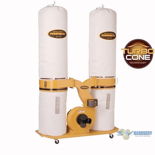 <li>The PM1900 Dust Collector is strong enough to use with planers, wide belt sanders, table saws and most other woodworking machines. The exclusive TurboCone improves chip separation to prevent clogging of the filter, and increases packing efficiency of the collector bags. The canister filter offers over six times the filtering area of standard filter bags, collects 98% of 2-micron particles. A digital timer can be set for up to 99 minutes, and an infrared sensor allows remote control operation. The all-metal duct improves rigidity and air flow. Multiple connection port capability makes this machine a central dust collection system for the entire woodworking shop. Four swivel casters and conveniently located handles allow for easy mobility.</li>