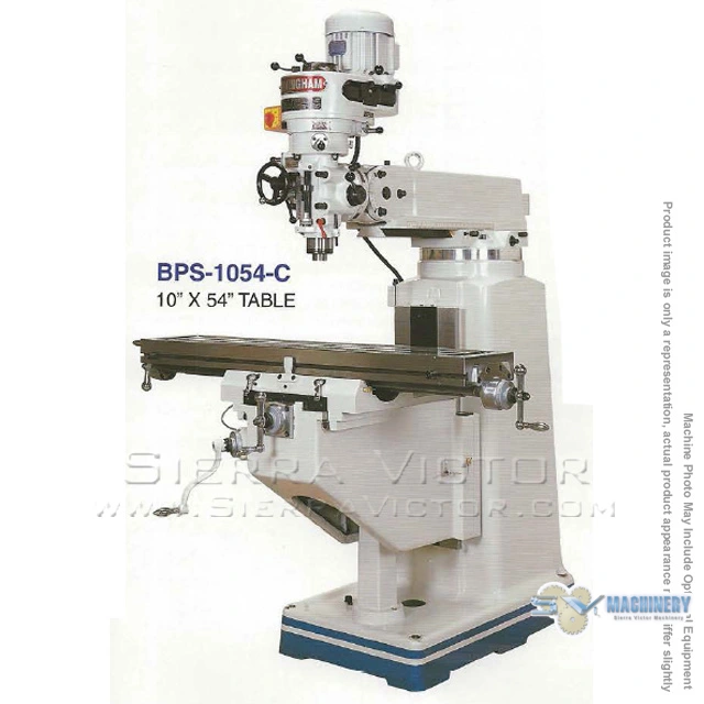 BIRMINGHAM BPS-1054-C 10" x 54" Step Pulley Vertical Knee Mill 16 Speed