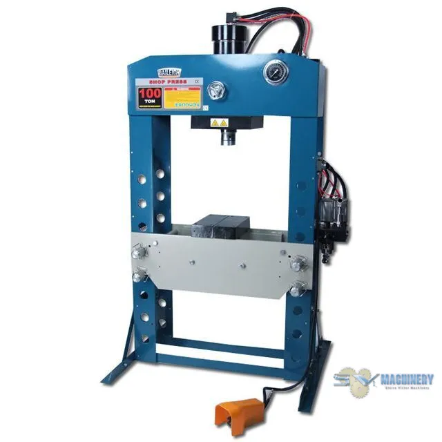 <p>This pneumatic shop press (air-powered) delivers 100 tons of force and offers the best value in its price range. With a heavy steel structure, the HSP-100A will last for years in any shop.</p>
