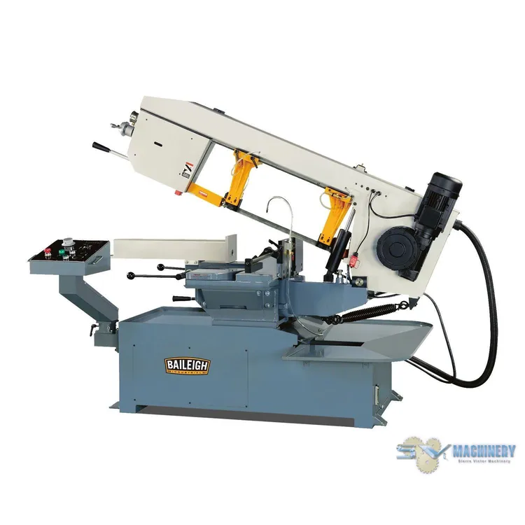 <ul><li>Need to <strong>increase production</strong>? The <strong>manual</strong> BS-20M-DM offers <strong>hydraulic descent</strong>, a roller infeed, and a material stop for efficiency. With its <strong>steel frame</strong>, the saw will last for many years.</li><li>Inverter drive lets you adjust blade speed: <strong>69 to 306 fpm</strong>.</li><li>Accepts <strong>large 1.25” blade</strong> (included) for speed and accuracy. The larger the blade, the straighter the cut.</li><li>Available in <strong>220-volt</strong> triple-phase or <strong>440-volt</strong> triple-phase (special order) models.</li><li>Industrial <strong>reduction gearbox transmission</strong> makes the saw more reliable than one with a belt and pulley system.</li><li>Miters <strong>45° left and 60° right</strong>. Just push or pull the head to the angle you need.</li><li>Rigid <strong>cast iron bow</strong> adds to the structural strength of the machine and reduces vibrations.</li><li><strong>Quick-lock vise</strong> has <strong>serrated jaws</strong> that grip onto round material, preventing it from spinning and ruining a blade.</li><li><strong>Hydraulic descent</strong> allows you to select the proper speed, increasing cut quality and blade life.</li><li><strong>Roller infeed and outfeed table</strong> enables you to slide the material to and from the blade, saving strain.</li><li>Includes a <strong>material stop</strong> for conveniently making repeat cuts.</li><li><strong>Digital readout</strong> shows the blade speed. Adjust the dial to use the same settings for multiples of a part.</li><li><strong>Electro-welded steel frame</strong> keeps vibrations down to a minimum, so your cuts stay straight and accurate.</li><li>Our <strong>patented blade tensioning gauge</strong> simplifies the process of checking the tension and adjusting it. Just line the black arrow up with the green area.</li><li>High-pressure <strong>flood coolant system</strong> washes away chips and helps the blade last longer.</li><li>Huge <strong>chip tray</strong> at the bottom collects debris and keeps your shop clean.</li><li><strong>Automatic shut-off</strong> system stops the machine once it’s done cutting, for your safety.</li><li>We typically keep this <strong>saw and its parts in stock</strong> for fast deliveries.</li><li>Covered by a <strong>1-year parts warranty</strong>.</li><li>The dual mitering horizontal band saw comes with <strong>lifetime technical support by phone</strong>Call up our team of experienced reps for troubleshooting or project advice.</li></ul>