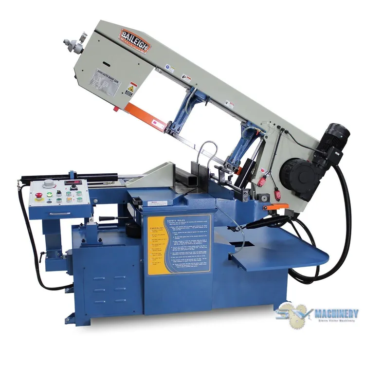 <ul><li>We built this semi-automatic band saw with a <strong>cast iron bow</strong> and <strong>steel frame</strong> to offer decades of reliable quality. Its <strong>hydraulic system</strong> will speed up production and save you effort.</li><li>Maximum capacity of <strong>13” OD round</strong> at 90°.</li><li>Accepts a <strong>1.25” blade</strong> (included). The large size makes faster and more accurate cuts.</li><li>Dual-mitering band saw can move <strong>45° left and 60° right</strong>. Just push or pull the head to the right angle.</li><li><strong>Inverter drive</strong> allows for infinite blade speed adjustments from <strong>69 to 306 fpm</strong>.</li><li>You can <strong>fine-tune the speed</strong> for materials like mild steel, bronze, or aluminum.</li><li><strong>Digital readout</strong> (DRO) allows you to reproduce settings with ease.</li><li>Available in <strong>220-volt or 440-volt</strong> triple-phase models (440-volt is a special order).</li><li><strong>Cast iron bow</strong> resists vibrations and helps to ensure a high-quality cut.</li><li><strong>Hydraulic vise, downfeed, and bow return</strong> make production runs more efficient. Set down the material, press start, and the saw will automatically handle the rest.</li><li>You can adjust the <strong>hydraulic descent pressure</strong> (depending on the material) to achieve faster cut times and longer blade life.</li><li>Cutting head return position can be altered for <strong>faster cycle times</strong> between cuts on smaller pieces.</li><li>Comes with <strong>heavy-duty infeed and outfeed tables</strong> for easier material handling.</li><li>Our <strong>patented blade tension device</strong> lets you easily set the right tension. Adjust until the black arrow lines up with the green liquid-filled gauge.</li><li><strong>Electro-welded steel frame </strong>gives the machine structural strength to maintain accuracy.</li><li><strong>Compact floor plan</strong> conserves space in your shop.</li><li>High-pressure <strong>flood coolant system</strong> washes away metal chips and helps blades last longer.</li><li>We typically keep this horizontal band saw and its <strong>parts in stock </strong>for fast deliveries.</li><li>Covered by a <strong>1-year parts warranty</strong>.</li><li>You can count on <strong>lifetime technical support by phone</strong>.</li></ul>