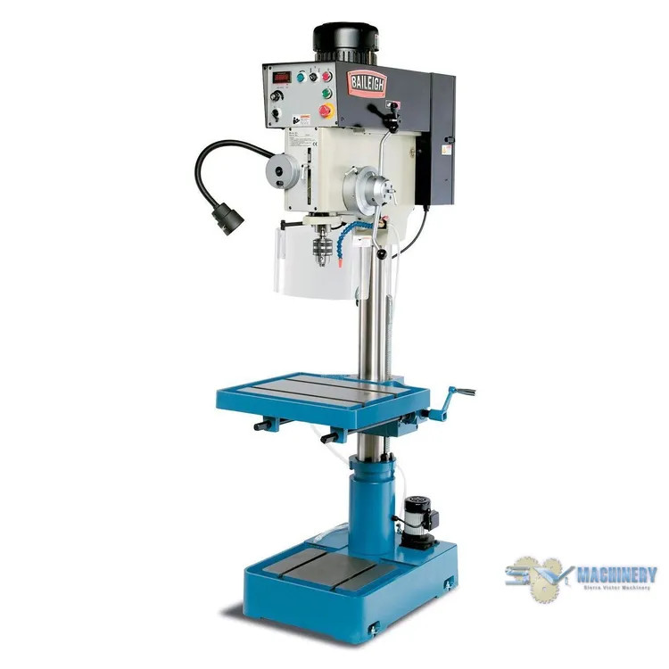 <p>BAILEIGH 1.5 inch Variable Speed Drill Press DP-1500VS</p><ul><li>Drill smarter and harder with this <strong>20” floor-type drill press</strong> which tackles hefty capacities at <strong>up to 2000 rpm</strong>. Built to deliver precise results for years, the DP-1500VS comes equipped with a variety of time-saving and performance-enhancing features.</li><li><strong>2 hp motor</strong> runs on <strong>220-volt single-phase power</strong> and will work practically anywhere.</li><li>Handles a maximum drilling capacity of <strong>1.5” steel</strong> and <strong>1.75” cast iron</strong>.</li><li><strong>Auto-reversing tapping</strong> feature has a capacity of <strong>.937”</strong>.</li><li><strong>Speed range from 65 to 2000 rpm</strong> lets you pick the right setting for your project.</li><li><strong>Potentiometer dial</strong> controls the drill speed.</li><li><strong>Digital readout</strong> on the front displays the speed in rpm for easy checking.</li><li>Sophisticated <strong>Delta inverter</strong> drives <strong>#4 Morse taper spindle</strong>.</li><li><strong>Chuck</strong> with <strong>automatic tool ejector</strong> simplifies tooling changes.</li><li>Large, machined <strong>22” x 18.5” drill table</strong> offers plenty of room for material.</li><li>Oversized <strong>.625” T-slots</strong> allow for secure clamping of a vise or fixture.</li><li><strong>Sturdy 4.52” column</strong> eliminates flex and <strong>boosts drilling accuracy</strong>.</li><li><strong>Cast base</strong> supports rigidity at maximum capacity.</li><li><strong>Power-down feed</strong> helps to prolong the machine’s lifetime of use.</li><li><strong>Safety guard</strong> around the spindle with a <strong>limit switch</strong> protects you and your shop.</li><li>Powerful <strong>coolant system</strong>, housed in the base, keeps the drill from overheating and helps the drill last longer.</li><li>Includes a <strong>bright halogen light</strong> that bends to enable you to see the material better as you work.</li><li>Baileigh covers this drill with a <strong>1-year parts warranty</strong> and <strong>lifetime technical support</strong>.</li><li><strong>Why choose the DP-1500VS over similar drill presses?</strong></li><li>You can <strong>extend tooling usage</strong> by adjusting the inverter-driven head and quill speed to each different drill size.</li><li>Continuous speed range, instead of just a few pre-set speeds, allows you to <strong>fine-tune the setting as you work</strong>.</li><li>We use only the <strong>best-quality heavy metal castings</strong> for the base and table to add to the overall strength of the drill press.</li><li>The DP-1500VS comes standard with <strong>features that other brands consider upgrades</strong>, like coolant systems and worklights.</li><li>You can <strong>call up Baileigh’s team of seasoned customer service reps any time</strong> for troubleshooting or expert advice on how to get the most out of the machine.<br></li></ul><div>ITEM: 20" Heavy Duty Variable Speed Drill Press</div><div>MANUFACTURER: BAILEIGH</div><div>MODEL: BA9-1002923</div><div><a class="eMAIL" href="mailto:dan@sierravictor.com?subject=Freight Quote and Availability Request from Website&body=Please Enter Your: %0A%0ANAME................:%0ACOMPANY........:%0AADDRESS..........:%0AZIP CODE..........:%0ATELEPHONE #..:%0A%0A%0ATHE INFORMATION BELOW WILL BE COMPLETED by SIERRA VICTOR%0A%0A %0A%0AItem/Model: BAILEIGH BA9-1002923%0A%0AFreight Price is:%0A%0AAvailability is:%0A"><span class="eMAIL"><br> CLICK HERE FOR FREIGHT QUOTE AND TO CONFIRM AVAILABILITY</span></a></div>