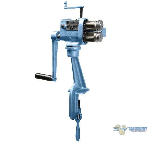 ROPER WHITNEY NO. 581 24 gauge Crimping and Beading Machine offers a broad variety of shapes and capabilities in forming sheet metal for a combination of uses: beading, crimping, setting down, double seaming, turning, burring, wiring, elbow edging, flanging, and flattening. These machines include ogee bead and crimping rolls to provide one pass combined crimping and beading. The No. 0581 has a maximum capacity of 24 gauge. In stock and ready to ship.This machine is MADE IN USA.