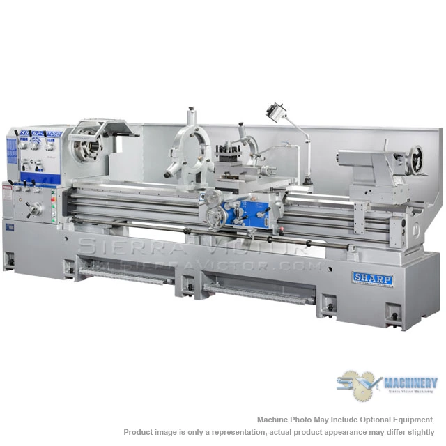 <p>SHARP 22" x 40" - 160" B-Series Precision Lathes</p><ul><li>This model has 4.5” spindle bore, D1-11 Camlock spindle nose, 16” wide bed, 15 HP motor offers great capacity for large work piece. The low speed goes down to 10 rpm offering enough torque for heavy cutting.</li><li>D1-11 camlock spindle</li><li>4.5" spindle bore</li><li>15 HP motor</li><li>12 speeds (10-1,000 rpm)</li><li>Quick change gearbox</li><li>One piece Meehanite cast bed</li><li>Direct selection for inch / metric threads</li><li>Double chucks available as option</li><li>4.5” spindle bore , largest spindle in this size lathes. More choices for different diameter of materials to be machined.</li><li>All headstock gears are hardened and ground made from Chrome-Moly material gives long lasting power and accuracy in machining</li><li>High precision pair of matched angular contact bearings supporting the front end of head stock, and rolling bearing for the rear end support. This arrangement allows high accuracy of the spindle even under heavy cutting conditions.</li><li>Wide range of feeds and threads. Selection done by “pull and lock” handles to avoid slipping in engagement of gears.</li><li>Gears in gearboxes are supported at 3 points with high precision bearings to ensure long lasting feeds and threading operations</li><li>Feed gears are mounted on spline shafts for adequate feed power</li><li>One piece casting bed instead of sheet metal connected legs ensure dampening of vibration and permanent straightness of the bed ways.</li><li>The carriage is coated with TURCITE for better oil retention and for minimum bedwear, longer life.</li><li>The removable gap increases the swing by an extra 9” to accommodate larger work pieces that are short in length</li><li>Jog button is equipped at headstock for easy engagement of gears before cutting</li><li>5” spindle bore, largest spindle in this size lathes. More choices for different diameter of materials to be machined.</li><li>All headstock gears are hardened and ground made from Chrome-Moly material gives long lasting power and accuracy in machining</li><li>High precision pair of matched tapered roller bearings supporting the front end of head stock, and ball bearing for the rear end support. This arrangement allows high accuracy of the spindle even under heavy cutting conditions.</li></ul><p><strong> STANDARD EQUIPMENT:</strong></p><ul><li>4-jaw 16" chuck, face plate (20")</li><li>Steady rest (4" – 11.5"), 4 ways tool post </li><li>Coolant system, halogen light</li><li>4-way carriage stop</li><li>Splash guard & 16" chuck guard</li><li>Tailstock, follow rest, tool kit</li><li>Rapid transverse on longitudinal (on 100" centers distance and up only)</li><li>Wired 220V or 440V</li></ul><div>ITEM: 22" x 40" - 160" Precision Lathes</div><div>MANUFACTURER: SHARP</div><div>MODEL: 2240B / 2260B / 2280B / 22100B / 22120B / 22160B</div><div><a class="eMAIL" href="mailto:dan@sierravictor.com?subject=Freight Quote and Availability Request from Website&body=Please Enter Your: %0A%0ANAME................:%0ACOMPANY........:%0AADDRESS..........:%0AZIP CODE..........:%0ATELEPHONE #..:%0A%0A%0ATHE INFORMATION BELOW WILL BE COMPLETED by SIERRA VICTOR%0A%0A %0A%0AItem/Model: SHARP B-SERIES: ENTER MODEL#%0A%0AFreight Price is:%0A%0AAvailability is:%0A"><span class="eMAIL"><br> CLICK HERE FOR FREIGHT QUOTE AND TO CONFIRM AVAILABILITY</span></a></div>