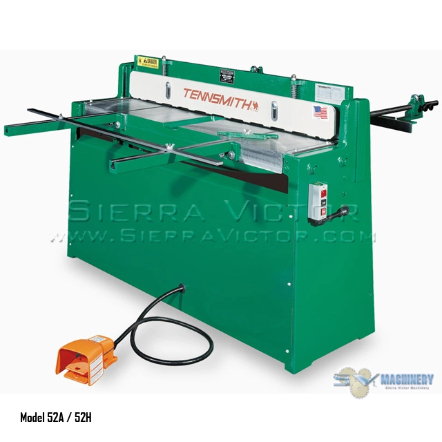 TENNSMITH 36A Air Shear has a max cutting length of 37 inches and 16 gauge mild steel capacity.TENNSMITH'S power shears combine all of the features of our foot shears with the advantage and convenience of air or hydraulic operation. The air shears utilize heavy-duty, tie rod-type pneumatic cylinders, which provide up to 40 strokes per minute in capacity materials.A foot-operated air valve control, pressure regulator, air gauge, oiler/condenser cups and neoprene, padded holddown feet are standard features.