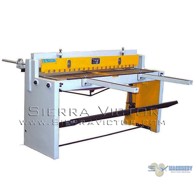 U.S. INDUSTRIAL US52-16 Foot Shear has a 52 inch (4 ft) shearing length capacity. The mild steel shearing capacity is 16 gauge. The Back gauge capacity is 25.5 inches and the Front gauge capacity 28 inches.