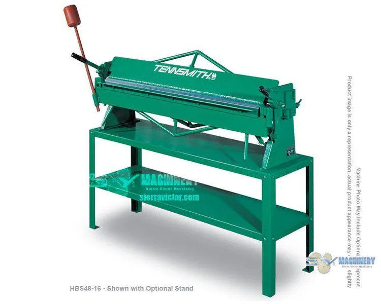 TENNSMITH HBS48-16 Bench-Mounted Straight Hand Brake has a bending length of 48-1/4 inches and 16 gauge mild steel capacity.TENNSMITH'S bench-mounted hand brakes are rugged, dependable USA-made tools that wont break your budget. The brake features a removable apron angle and apron insert permitting 1/4 inch reverse bends in lighter materials. The upper leaf and nose bar has a wide range of adjustment for radius bending. Standard equipment includes an apron stop rod for repeat bends, extension handles and a counterweight.