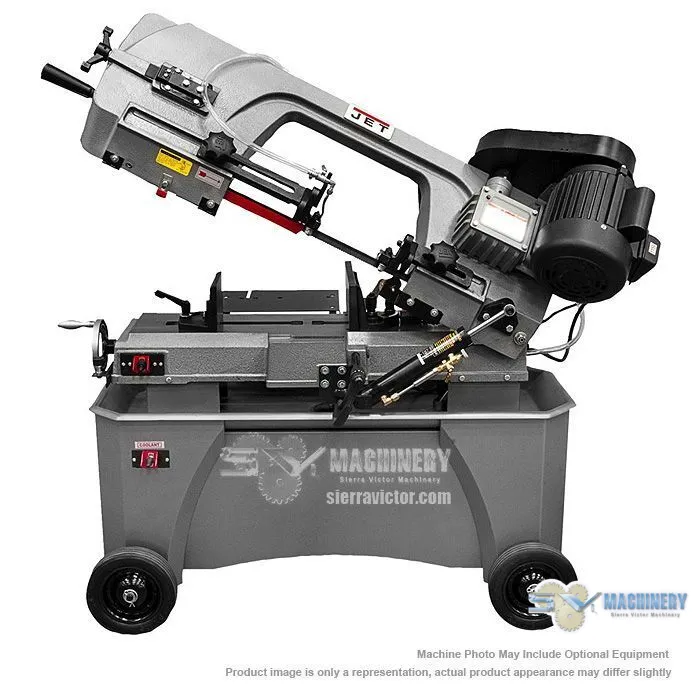 JET HVBS-712D Deluxe Horizontal/Vertical Bandsaw has a cutting capacity of 7 x 12 inches. Large 10 x 12 inch infeed table assembly extends the support area and can be used in either horizontal or vertical positions. Multi-position blade guides enhance use in vertical position by increasing the throat capacity from 4" to 8" and creates a safer working position.
