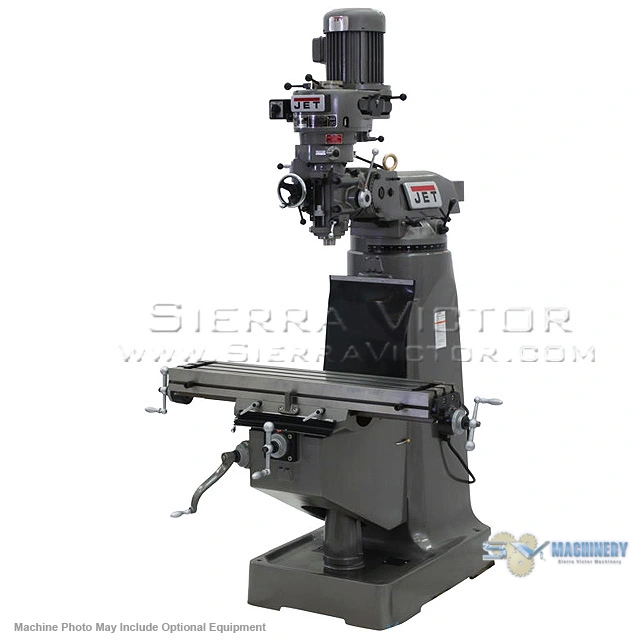 <p>JET JTM-1 9 x 42 inch Step Pulley Milling Machine 230V 3Ph, JT9-690082</p><ul><li>Three-stage power down feed with auto stop, high precision Class 7 spindle bearings and the rugged stability of Meehanite castings ensures you get everything you need from the JTM-1 and 2 models. The internally cooled spindle head prevents seizing, and JET precision engineering ensures superior results with all the features you've come to expect, all backed by the industry-leading JET Two Year Warranty</li><li>Certified Meehanite Castings</li><li>Precision bored and honed milling head</li><li>Large diameter quill is chromed</li><li>High precision Class 7 spindle bearings</li><li>Spindle head is internally cooled</li><li>Satin chrome finished dials</li><li>Heavy duty splined motor drive</li><li>One piece quill pinion and shaft</li><li>Three stage power downfeed with automatic stop</li><li>Heavy duty spindle brake</li><li>Precision hardened and ground ways</li><li>Standard Equipment</li><li>Internal coolant tank built into base for use with coolant system (coolant pump not included)</li></ul><p><strong>EQUIPPED WITH:</strong></p><ul><li>Tolerance test sheet included</li><li>One shot lubrication system</li><li>Way covers</li><li>Draw bar</li><li>Tool box with tools</li></ul><div>ITEM: 9" x 42" Vertical Step Pulley Milling Machine</div><div>MANUFACTURER: JET</div><div>MODEL: JTM-1</div><div>PART# JT9-690082</div><div><a class="eMAIL" href="mailto:dan@sierravictor.com?subject=Freight Quote and Availability Request from Website&body=Please Enter Your: %0A%0ANAME................:%0ACOMPANY........:%0AADDRESS..........:%0AZIP CODE..........:%0ATELEPHONE #..:%0A%0A%0ATHE INFORMATION BELOW WILL BE COMPLETED by SIERRA VICTOR%0A%0A %0A%0AItem/Model: JET JTM-1: ENTER PART# %0A%0AFreight Price is:%0A%0AAvailability is:%0A"><span class="eMAIL"><br> CLICK HERE FOR FREIGHT QUOTE AND TO CONFIRM AVAILABILITY</span></a></div>