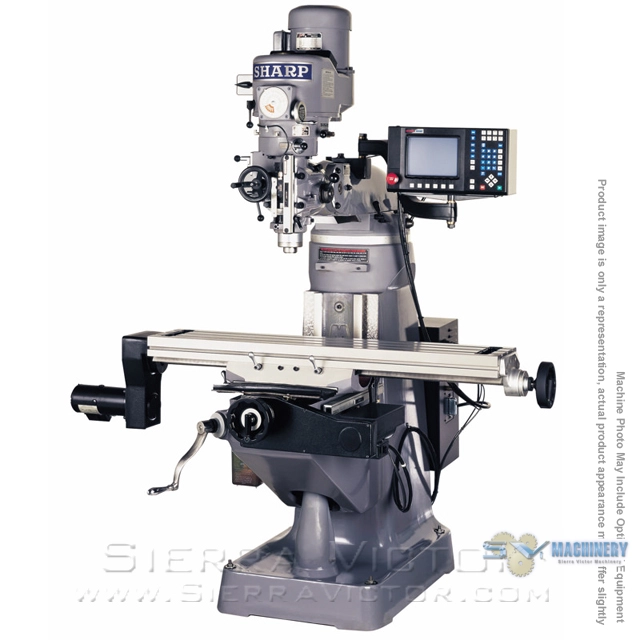 <li>This is a simple, easy to use 2 axes CNC control vertical mill. Ball screws and servo drives are installed for longitudinal and cross travel. 3 axes Digital Readout System are installed on the table, saddle and quill. The Millpwr G2 CNC has G code and conversational type programming . The CNC system is built on the top quality SHARP vertical mills Model LMV, LMV-50 and LMV-49-DVS frame.</li>