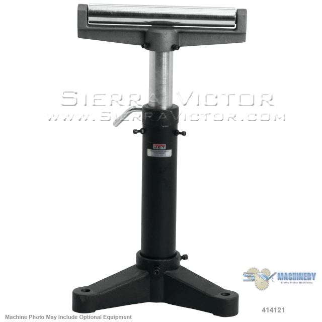 Convenient stock support for use with saws and lathes. (JT9-414121)This heavy-duty stand is ideal for use with JET table saws, band saws, planers and drill presses. V-shape holds long stock loads up to 2000 lb. Rollers allow the piece to move carefully during your process. (JT9-414122) Heavy-duty cast iron and steel construction