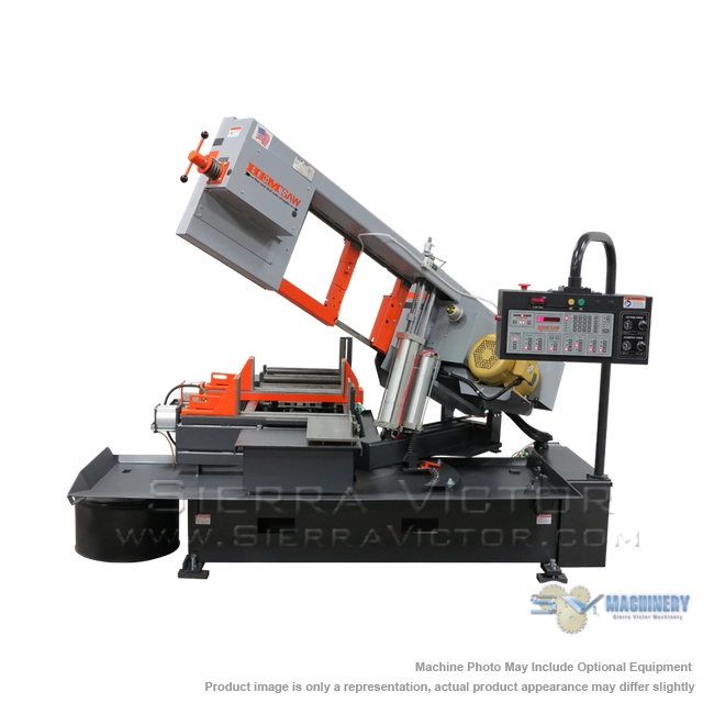 The Cyclone A-C multiple indexes with a 24” bar-feed, saves up to 99 jobs, sawing one job or multiple jobs of differing lengths and quantities in sequence. Each job includes job number, part length and quantity and can miter up to 45ᵒ in one direction cutting solids or shapes.220V/3PH or 440V/3PH Electrical Motor Requirement - This is Not a Dual Voltage Machine.
