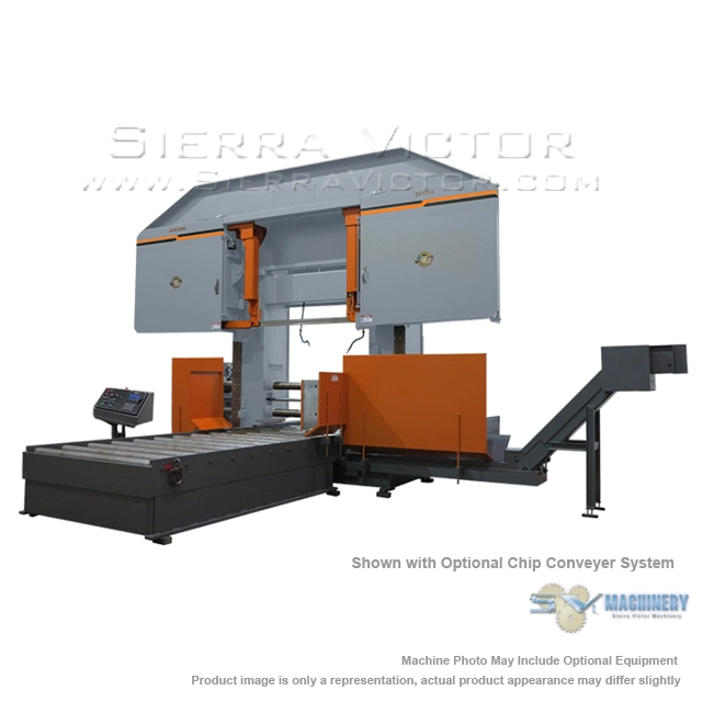 HE&M DC5353 Dual Column Bandsaw has a 53 inch round cutting capacity.The DC5353 is operated using a touch screen control in a pedestal mounted console and can be operated in manual or semi-automatic modes. Full stroking variable-pressure vise and powered guide arm are standard along with other features. Active Cut Watcher is standard.