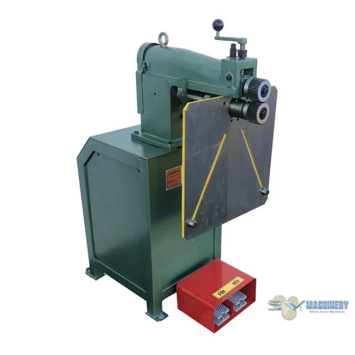 TIN KNOCKER Power Crimper Beader has a mild steel capacity of 18 gauge.This is a versatile, workhorse of a machine. With a 13 inch throat and capacity of 18-gauge mild steel, it can perform most all beading and swaging functions. It is a beefy 3/4 HP machine, with the business end made of solid, machined cast iron, mounted on a sturdy sheet metal cabinet. A two-pedal foot switch allow the operator to have two hands free at all times when changing direction of the rolls.