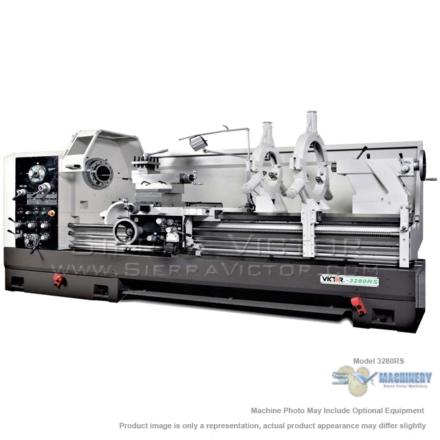 <p>VICTOR 3600RS Series 36" x 60" - 240" Precision Heavy-Duty Lathes</p><ul><li>Victor 3600RS series lathe is designed to provide outstanding performance and structural rigidity with 4-1/8" spindle bore and 20 HP main motor.</li><li>4-1/8" spindle bore with D1-11 camlock spindle nose</li><li>The precision ground spindle is supported at three points by high precision bearings</li><li>Heavily ribbed wide bed with induction hardened and precision ground bed ways for rigidity and low vibration<br></li><li>Hardened and precision ground alloy steel gears and shafts<br></li><li>Universal gearbox for inch, metric, D.P., and module threading without changing gears</li><li>Automatic and manual dual mode lubrication system for slide ways</li><li>Adjustable safety overload device</li><li>Tailstock quill is equipped with 4:1 reduction gearing ratio to provide easy drilling operation</li><li>Two-way longitudinal power rapid traverse on the model with 120" between centers or longer</li><li>Automatic stopper for longitudinal feeds </li></ul><p><strong>STANDARD ACCESSORIES:</strong></p><ul><li>Center sleeve</li><li>Dead center M.T. #5</li><li>Threading dial indicator</li><li>Coolant system</li><li>Leveling screws and pads</li><li>Tailstock with two-speed quill</li><li>Removable gap</li><li>Manual and parts list</li><li>*Two-way power rapid traverse on model with 120" between centers or longer </li></ul><p><strong> MACHINE INCLUDES:</strong></p><ul><li>Steady rest with rollers</li><li>4-way tool post</li><li>Halogen work light</li><li>Chuck cover with limit switch</li></ul><div>ITEM: 36" x 60" - 240" Precision Heavy-Duty Lathes</div><div>MANUFACTURER: VICTOR</div><div>MODEL: 3660RS / 3680RS / 36120RS / 36160RS / 36200RS / 36240RS</div><div><a class="eMAIL" href="mailto:dan@sierravictor.com?subject=Freight Quote and Availability Request from Website&body=Please Enter Your: %0A%0ANAME................:%0ACOMPANY........:%0AADDRESS..........:%0AZIP CODE..........:%0ATELEPHONE #..:%0A%0A%0ATHE INFORMATION BELOW WILL BE COMPLETED by SIERRA VICTOR%0A%0A %0A%0AItem/Model: VICTOR 3600RS SERIES: ENTER MODEL#%0A%0AFreight Price is:%0A%0AAvailability is:%0A"><span class="eMAIL"><br> CLICK HERE FOR FREIGHT QUOTE AND TO CONFIRM AVAILABILITY</span></a></div>