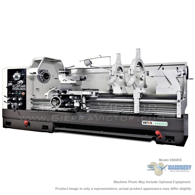 <p>VICTOR 2800RS Series 28" x 60" - 240" Precision Heavy-Duty Lathes</p><ul><li>Victor 2800RS series lathe is designed to provide outstanding performance and structural rigidity with 4-1/8" spindle bore and 20 HP main motor.</li><li>4-1/8" spindle bore with D1-11 camlock spindle nose<br></li><li>The precision ground spindle is supported at three points by high precision bearings</li><li>Heavily ribbed wide bed with induction hardened and precision ground bed ways for rigidity and low vibration<br></li><li>Hardened and precision ground alloy steel gears and shafts<br></li><li>Universal gearbox for inch, metric, D.P., and module threading without changing gears</li><li>Automatic and manual dual mode lubrication system for slide ways</li><li>Adjustable safety overload device</li><li>Tailstock quill is equipped with 4:1 reduction gearing ratio to provide easy drilling operation</li><li>Two-way longitudinal power rapid traverse on the model with 120" between centers or longer</li><li>Automatic stopper for longitudinal feeds</li></ul><p><strong>STANDARD ACCESSORIES:</strong></p><ul><li>Center sleeve</li><li>Dead center M.T. #5</li><li>Threading dial indicator</li><li>Coolant system</li><li>Leveling screws and pads</li><li>Tailstock with two-speed quill</li><li>Removable gap</li><li>Manual and parts list</li><li>*Two-way power rapid traverse on model with 120" between centers or longer </li></ul><p><strong> MACHINE INCLUDES:</strong></p><ul><li>Steady rest with rollers</li><li>4-way tool post</li><li>Halogen work light</li><li>Chuck cover with limit switch</li></ul><div>ITEM: 28" x 60" - 240" Precision Heavy-Duty Lathes</div><div>MANUFACTURER: VICTOR</div><div>MODEL: 2860RS / 2880RS / 28120RS / 28160RS / 28200RS / 28240RS</div><div><a class="eMAIL" href="mailto:dan@sierravictor.com?subject=Freight Quote and Availability Request from Website&body=Please Enter Your: %0A%0ANAME................:%0ACOMPANY........:%0AADDRESS..........:%0AZIP CODE..........:%0ATELEPHONE #..:%0A%0A%0ATHE INFORMATION BELOW WILL BE COMPLETED by SIERRA VICTOR%0A%0A %0A%0AItem/Model: VICTOR 2800RS SERIES: ENTER MODEL#%0A%0AFreight Price is:%0A%0AAvailability is:%0A"><span class="eMAIL"><br> CLICK HERE FOR FREIGHT QUOTE AND TO CONFIRM AVAILABILITY</span></a></div>