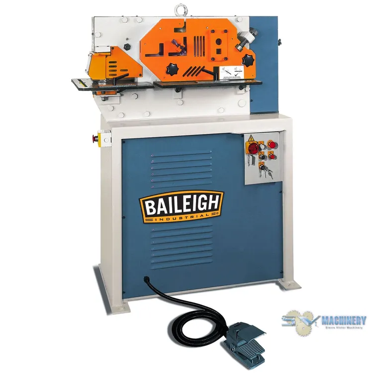 <ul><li>This pivot-style hydraulic ironworker combines a compact footprint with a budget-friendly price to meet the needs of small fabrication shops. The SW-443 includes just about every feature you’d want to help you shear and punch smoothly.</li><li>Runs on 220-volt 3-phase power.</li><li>Delivers 44 tons of force for punching and shearing.</li><li>Stations for 4 main functions: flat-bar shearing, angle cutting, section cutting for multiple profiles, and punching.</li><li>Runs at up to 23 cycles per minute, increasing the speed of your projects.</li><li>Product hold-downs for all stations ensure clean, straight shearing.</li><li>Large reference tables accommodate bigger pieces of material and easily pull out from the machine, so that you can get the punch closer to angle iron.</li><li>Product guides make repeatability a cinch when you’re setting up production runs.</li><li>Large-button control panel and foot pedal punch control are conveniently located.</li><li>Offers adjustable stroke control, with upstrokes and downstrokes for the punching and shearing sections and a maximum stoke length of 1.125".</li><li>Accepts optional tooling available from Baileigh Industrial, such pipe notching and press brake attachments, to make this machine even more versatile.</li><li>Includes .75” punch and die.</li><li>Heavy welded steel plate construction maintains accuracy, minimizes flex, and makes the machine last longer.</li><li>Baileigh covers the SW-443 with a 1-year warranty and lifetime technical support by phone.</li><li>This ironworker’s small footprint will fit into tight shop spaces and just about any job site.</li><li>The SW-44 comes standard with features that you won’t find on most ironworkers in this price range, like a large table with product guides and a foot pedal.</li><li>Quick-release punch and die system makes changeovers faster and more efficient.</li><li>CSA and CE certifications vouch for the machine’s exacting quality and safety standards.</li></ul>