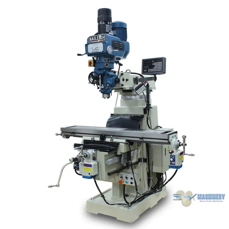 <p>BAILEIGH 10" x 54" Variable Speed Vertical Mill VM-1054E-VS</p><ul><li> The VM-1054E-VS is a variable speed milling machine that runs from 60 to 4,200 rpm. By selecting the right speed tooling life is lengthened and cut quality improves, both of which save money. Baileigh Industrial selected an ISO 40 taper for its spindle to help improve performance as well. A larger spindle is stronger and has tighter tolerances over a longer period of time. Rigidity is also very important on a mill that is why Baileigh Industrial went with only the best castings to make the base and frame. The stronger you make he platform the better the cutting is. Table size is another very important component when deciding which milling machine to buy and VM-1054E-VS has a 10” x 54” table that has been hardened, ground, polished, and coated with a special coating called Turcite B to extend life and help eliminate corrosion. </li><li> All three axis are powered on the VM-1054E-VS making it easy on the operator. Another nice feature is the two axis digital readout that comes standard. This digital readout is accurate to 1/10 of 1 thousandth of an inch. A flood coolant system, air draw bar, and central lubrication system are all factory installed on the VM-1054E-VS. </li></ul><div>ITEM: 10" x 54" Variable Speed Vertical Mill</div><div>MANUFACTURER: BAILEIGH</div><div>MODEL: BA9-1020696</div><div><a class="eMAIL" href="mailto:dan@sierravictor.com?subject=Freight Quote and Availability Request from Website&body=Please Enter Your: %0A%0ANAME................:%0ACOMPANY........:%0AADDRESS..........:%0AZIP CODE..........:%0ATELEPHONE #..:%0A%0A%0ATHE INFORMATION BELOW WILL BE COMPLETED by SIERRA VICTOR%0A%0A %0A%0AItem/Model: BAILEIGH BA9-1020696%0A%0AFreight Price is:%0A%0AAvailability is:%0A"><span class="eMAIL"><br> CLICK HERE FOR FREIGHT QUOTE AND TO CONFIRM AVAILABILITY</span></a></div>
