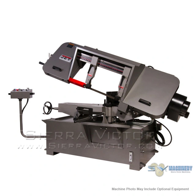 <li>This JET large capacity , semi-automatic horizontal bandsaw is loaded with features that allow the operator the ability to fine tune the blade speed easily and quickly on a convenient swing away control panel. The sturdy head raises automatic while the mitering head allows the user to cut up to a 45° angle. The hydraulic downfeed control is easily adjusted, enabling feed rates to evolve with various types of material while the hydraulic vise makes set up easier for the operator.</li>