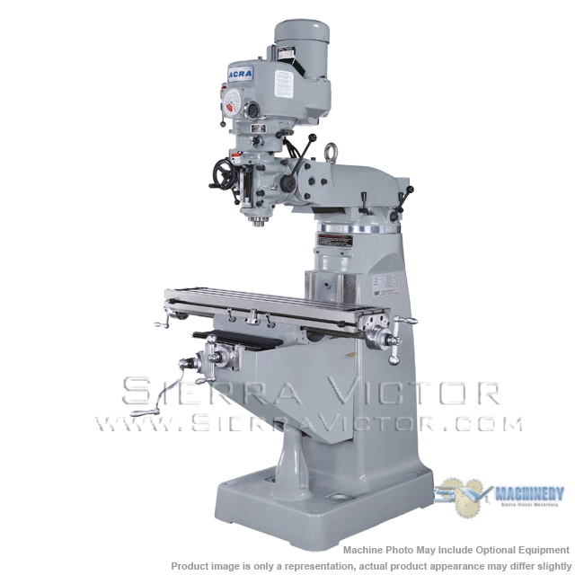 ACRA LCM-50 Knee Mill w/X-Axis Power Feed and Sino 2-Axis DRO Unit Installed with 9" x 50" Table Working Surface - FREE SHIPPING! 3hp Motor High quality - All Taiwan Mill