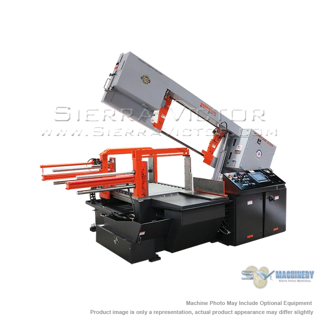 HE&M HURRICANE 2030A-CTS Horizontal Miter Bandsaw has a 30 inch round cutting capacity.The Hurricane 2030A-CTS band saw allows programmable miter cuts up to 60ᵒ in one direction. A touch screen control is mounted in a swing-away console for settings, operational functions, and diagnostics. The control allows manual, semi-automatic or automatic cutting. A chip auger and Cut Watcher are included.