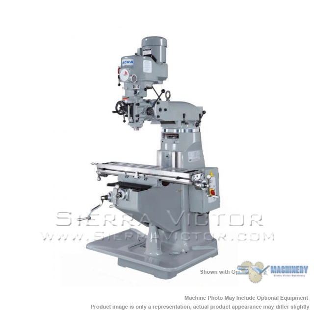 ACRA LCM50 Vertical Variable Speed Milling Machine has a 9" x 50" Table Size. This Vertical Knee Milling Machine is Made in Taiwan. 3 HP, 230/460V AC/3PH Main Motor. Standard equipment includes: Quill Heat Treated, Hardened & Chromed, One Shot Lubrication, Emergency Stop, Meehanite Casting and Chrome Way.