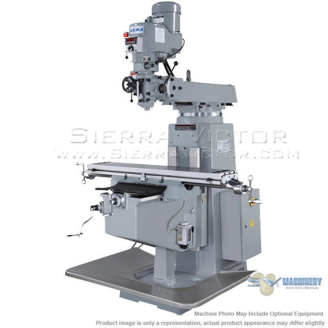 ACRA LCTM1 Vertical Variable Speed Milling Machine has a 10" x 54" table size. Made in Taiwan. 3 HP, 230/460V AC ~ 3 PH Main Motor. Standard equipment included: Quill Heat Treated, Hardened & Chromed, Hardened Ground Way, One Shot Lubrication and Meehanite Casting.