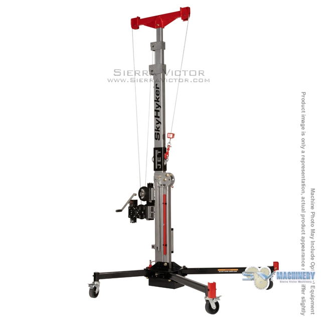 <div>JET 25 ft SkyHyker Mobile Material Lift SKY25 | JT1-595</div><ul><li>TAKING EFFICIENCY, MOBILITY, AND SAFETY TO NEW HEIGHTS</li><li>Engineered for unparalleled efficiency, the SkyHyker Material Lift redefines industry standards by achieving the perfect blend of capacity and precision.</li><li><strong><span id="selection-marker-1" class="redactor-selection-marker"></span>MAX MOBILITY:</strong> This patent-pending, foldable design pivots between work and travel modes without having to disassemble your lift. SkyHyker also fits through a standard doorway.</li><li><strong>EXTREME CAPACITY:</strong> Effortlessly handle your lifting needs with an impressive capacity of up to 2,000 lbs, while also offering a telescoping capability of up to 1,000 lbs, doubling that of the competition</li><li><strong>SMOOTH OPERATION:</strong> This lift restricts operation to the safe lifting position, while also boasting improved ergonomics and conveniently located service points for easy access and maintenance.</li><li><strong>SUPERIOR RELIABILITY:</strong> SkyHyker boasts a reinforced T-bar design, maximizing strength and stability, while its integrated no-freefall worm gear winch ensures unparalleled safety with every operation.<span id="selection-marker-2" class="redactor-selection-marker"></span></li><li>MADE IN THE USA</li><li>WHAT MAKES SKYHYKER SUPERIOR: </li><li>When talking to contractors, we learned that job site lifts leave a lot to be desired. That’s why we created a lift that’s designed, built, and engineered for the toughest tasks.</li><ul><li>33% greater lifting capacity – 2,000 lbs.</li><li>2x telescopic load capacity – 1000 lbs.</li><li>One-off assembly – easily fits through a standard doorway</li><li>Prevents associated work-related injuries – worm gear winches, zero fatigue and no free fall</li><li>Built to last – lift rated and verified with lifecycle testing</li></ul></ul><div>ITEM: 25 ft SkyHyker Mobile Material Lift</div><div>MANUFACTURER: JET</div><div>MODELS: SKY25</div><div>STOCK# JT1-595</div><div><a class="eMAIL" href="mailto:dan@sierravictor.com?subject=Freight Quote and Availability Request from Website&body=Please Enter Your: %0A%0ANAME................:%0ACOMPANY........:%0AADDRESS..........:%0AZIP CODE..........:%0ATELEPHONE #..:%0A%0A%0ATHE INFORMATION BELOW WILL BE COMPLETED by SIERRA VICTOR%0A%0A %0A%0AItem/Model: JET SKY25: STOCK# JT1-595 %0A%0AFreight Price is:%0A%0AAvailability is:%0A"><span class="eMAIL"><br> CLICK HERE FOR FREIGHT QUOTE AND TO CONFIRM AVAILABILITY</span></a></div>