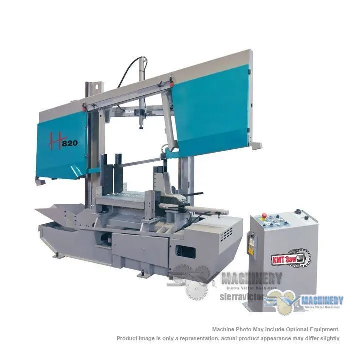 KMT SAW H820SA Semi-Automatic Double Column Bandsaw has a 31-3/4" round cutting capacity. The H820 offers the largest capacity for round material. We can supply custom jaws for different size round material (see pictures). Standard equipment includes One Bi-metal saw blade, Low voltage control, TEFC 3 phase drive motor, Totally enclosed worm gear transmission, Full Coolant System, Full Blade Guarding, Operators Manual Parts List/Schematics and Tool kit.