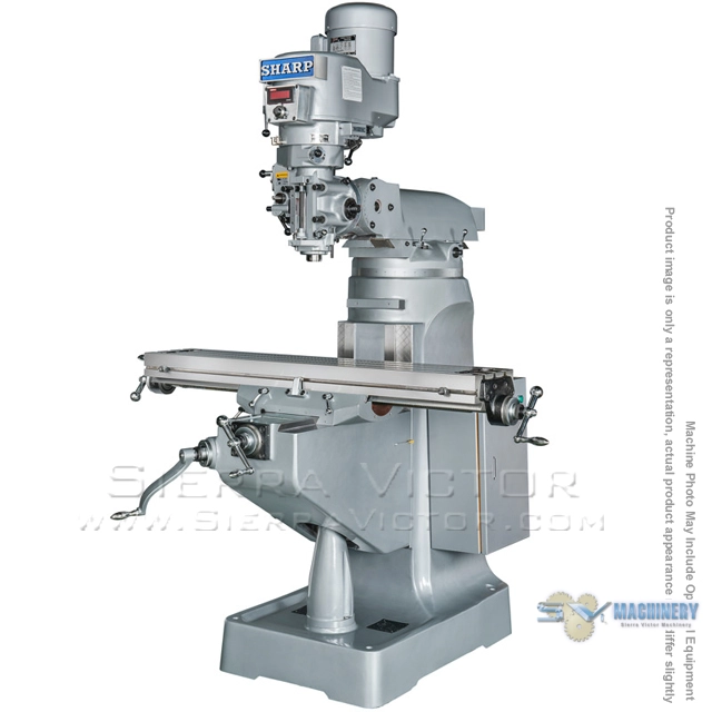 <li><strong>Patented Knuckle Head design</strong>: The New Patented Knuckled-Head Design prevents the head from slipping. The Sharp mills have a knuckle which uses 6 bolts, 3 each side, fitted into circular T-slots with matching nuts securing them from the outside. It locks the head in place for better accuracy and performance than the old design using only 3 bolts to squeeze the casting to hold the head without the T-slots. (Patent No. 5044054)</li>