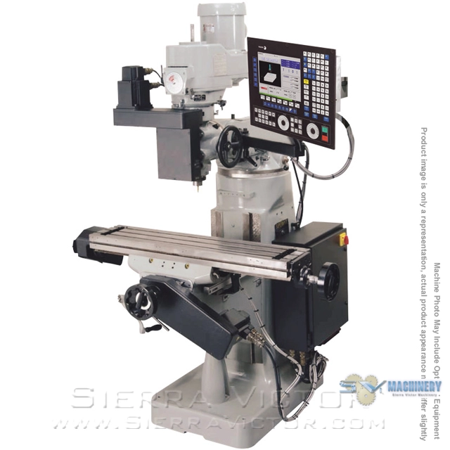 <li>This is a simple, easy to use 3 axes CNC control vertical mill. Ball screws and servo drives are installed for longitudinal and cross travel. 3 axes Digital Readout System are installed on the table, saddle and quill. The FAGOR CNC has G code and conversational type programming with Teach-In Mode. The CNC system is built on the top quality SHARP vertical mills Model LMV, LMV-50 and LMV-49-DVS frame.</li>