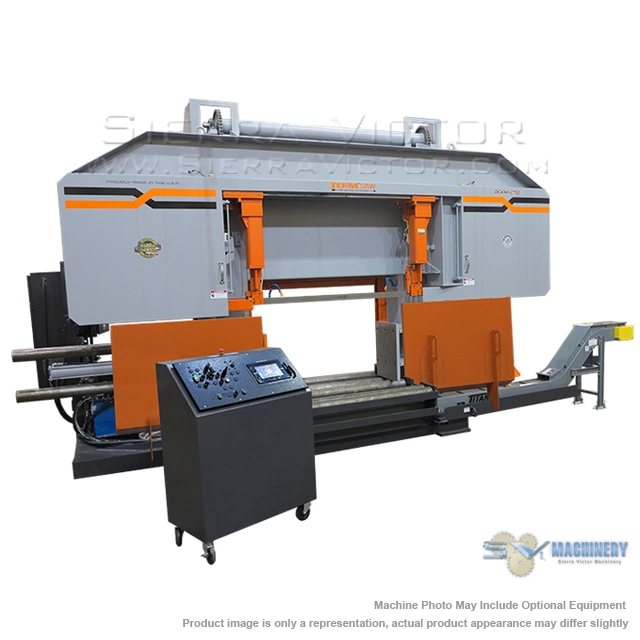 HE&M DC4045 Dual Column Bandsaw has a 40 inch round cutting capacity.The DC4045 is operated using a touch screen control in a pedestal mounted console and can be operated in manual or semi-automatic modes. Full stroking variable-pressure vise and powered guide arm are standard along with other features. Active Cut Watcher is standard.