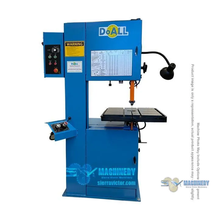 The DoALL 2012-VH vertical contour band saw features a hydraulically powered work table with 12" table stroke. These upright, variable hydraulic controlled metal cutting band saws are flexible and dependable for a wide variety of applications. The Machine Capacity is w 20" x h 12" (508mm x 305mm) Standard Features: Variable Frequency AC Drive, Band Speed Indicator, Tilting Table, Chip Blower.