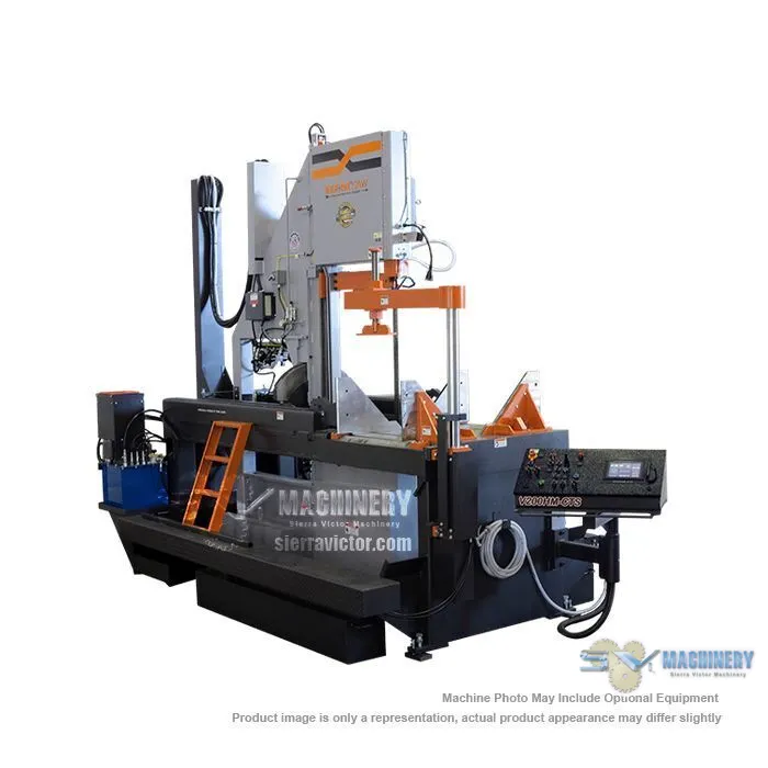 The HE&M V200HM-CTS Semi-Automatic Vertical Bandsaw has a round cutting capacity of 25 inches (diameter). The V200HM-CTS band saw is operated by a touch screen control that is located in a swing-away console at the front of the saw and allows the operator to enter an angle and the arm will travel to that position and stop.220V/3PH or 440V/3PH Electrical Motor Requirement - This is Not a Dual Voltage Machine.
