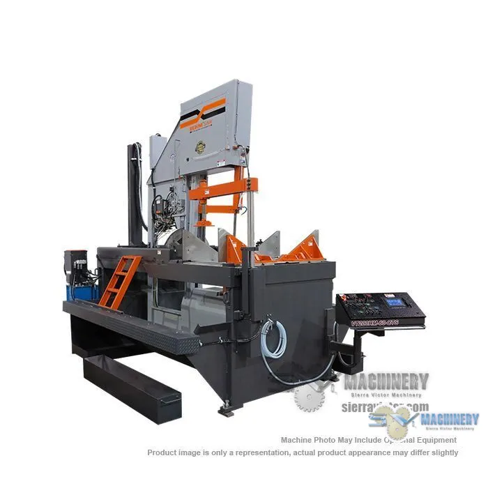 The HE&M VT200HM-60-CTS Semi-Automatic Vertical Bandsaw has a round cutting capacity of 25 inches (diameter). The VT200HM-CTS band saw is operated by a touch screen control that is located in a swing-away console at the front of the saw and allows the operator to enter an angle and the arm will travel to that position and stop. The arm has a forward cant.220V/3PH or 440V/3PH Electrical Motor Requirement - This is Not a Dual Voltage Machine.