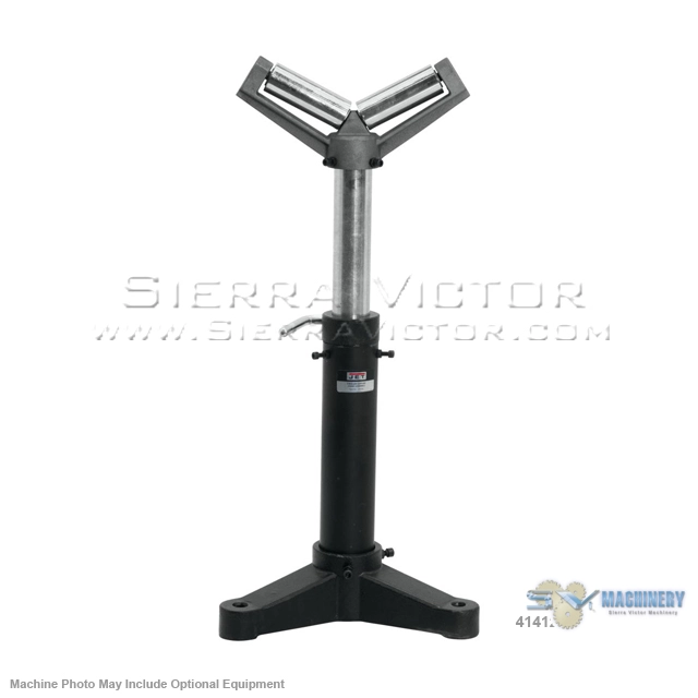 Convenient stock support for use with saws and lathes. (JT9-414121)This heavy-duty stand is ideal for use with JET table saws, band saws, planers and drill presses. V-shape holds long stock loads up to 2000 lb. Rollers allow the piece to move carefully during your process. (JT9-414122)Heavy-duty cast iron and steel construction