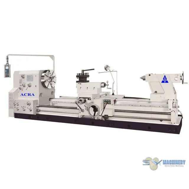 ACRA 59000SHT Heavy Duty Precision Gap Bed Engine Lathe has a 59" swing and 80" - 600" distance between centers. Made in Taiwan - High Quality! 40 HP, 230/460V AC/3PH Spindle Drive Motor.Standard equipment includes: Halogen Light, 4 Way Tool Holder, Moving Splash Guard, 4 Way Rapid Travel and Coolant System.